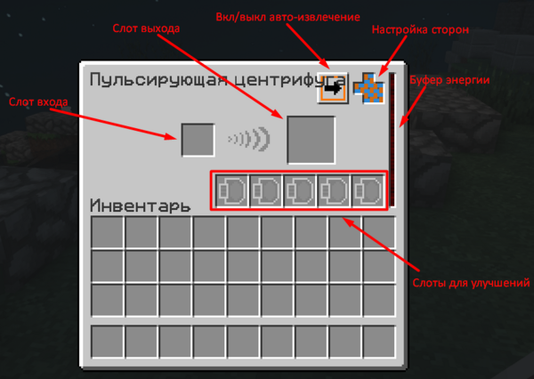 |версия=1.7.10}}'''Пульсирующая центрифуга''' - это механизм, добавляемый модификацией [[ | |версия=1.7.10}}'''Пульсирующая центрифуга''' - это механизм, добавляемый модификацией [[gravityexpansion/lazy ae2|GravityExpansion:Lazy AE2]] на проекте [https://gravitycraft.ru/rd/wiki GravityCraft], предназначенный для автоматизации изготовления некоторых ресурсов. | ||