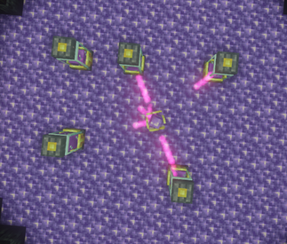 На расстоянии до 3-ёх блоков от аппарата ставятся аркановые пьедесталы, под самим же прибором ставится Тайное ядро.