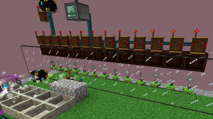 Вопрос который мог возникнуть, почему именно 13 аконитов, ящиков, 14 соединителей, 14 беспроводных передатчиков редстоун сигнала? После того, как мы тестировали 13+ аконитов заметили, что после исчезновения звезд всегда оставались по 3 звезды, от чего ферма снижала производительность.