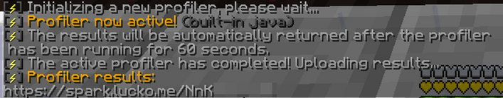 видим сверху надпись - 60 FPS - Прописываем данную команду /sparkc sampler --timeout 60 (можно написать любое время в секундах). Можно использовать данную команду для запуска spark - /sparkc sampler, и для остановки - /sparkc sampler --stop. По окончанию записи спарка появится ссылка с тем что нагружает у вас ПК