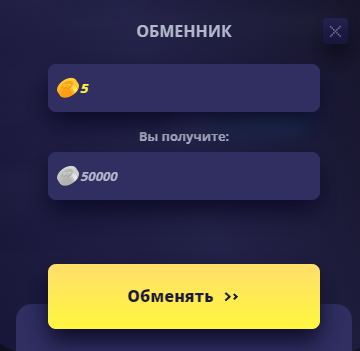Для обмена монет в эконы вам необходимо указать количество монет и подтвердить обмен.