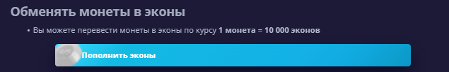 В этом же разделе доступен обмен монет в эконы, где 1 монета = 10000 эконов.
