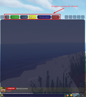 Приватные сообщения - вкладка красного цвета с ником игрока, которому вы писали приватное сообщение.