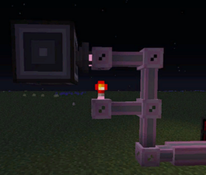 Результат появится как только предметы уйдут ниже значения, указанного в излучателе красного камня. Т.е после того как значение опуститься ниже определённого, то система автоматически начнёт крафт предмета.