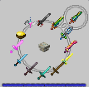 Щелчок левой кнопкой мыши вызовет 4 призрачных меча, которые полетят по точке удара. Каждый меч нанесёт каждому существу 7 единиц урона. Призыв мечей не расходует ману.