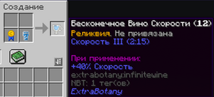 Бесконечное вино. Получение: нужно скрафтить пустую бутылку из манастекла.