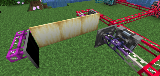 10) Спереди кабелей (перед пространством внутри ускорителей роста) которыми мы соединили шины с бочкой ставим 2 плоскости уничтожения нижнюю зачаровываем на шёлковое касание (Верхнюю опционально в наковальне зачаровываем на удачу, если хотите получить больший выход кварца)