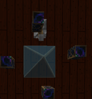 В первую очередь для создания големов нужно установить верстак и в радиусе 5-ти блоков от него разместить 8 кристаллов химерита (не обязательно ставить все на одной плоскости).
