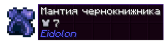 Мантия чернокнижника - усиливает магическую защиту своего обладателя. Урон от магии и иссушения, наносимый владельцу будет уменьшен вдвое.