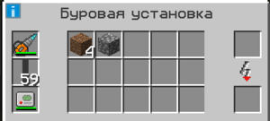 - Алмазный бур - добывает блоки в 2 раза быстрее обычного бура. Незаменимый компонент для работы буровой установки. Крафтится из трех алмазов и одного шахтерского бура.
