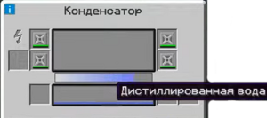 - Конденсатор - охлаждает перегретый пар, превращая его в дистиллированную воду. Как правило, он используется как вспомогательная машина вместе с парогенератором и кинетическим парогенератором. Обеспечивает постоянное количество дистиллированной воды в системе, конденсируя отработавший перегретый пар обратно в дистиллированную воду. Крафтится из четырех пустых капсул, трех железных оболочек, одной базовой электросхемы и одного базового корпуса машины.