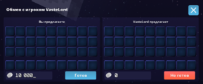 Чтобы обмен прошел успешно, общая стоимость предметов с обеих сторон должна отличаться минимально!