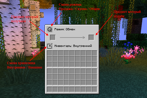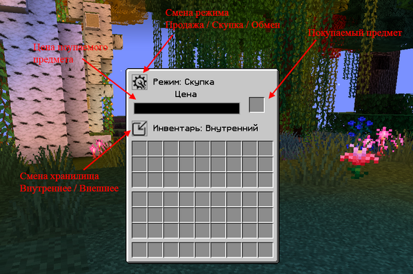 Для покупки предметов: ПКМ по блоку магазина, далее выбор количества покупок. Либо быстрая покупка: Shift + ПКМ, производит покупку одного предмета.