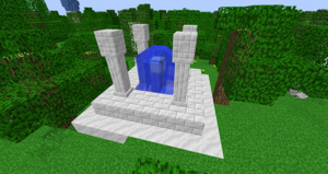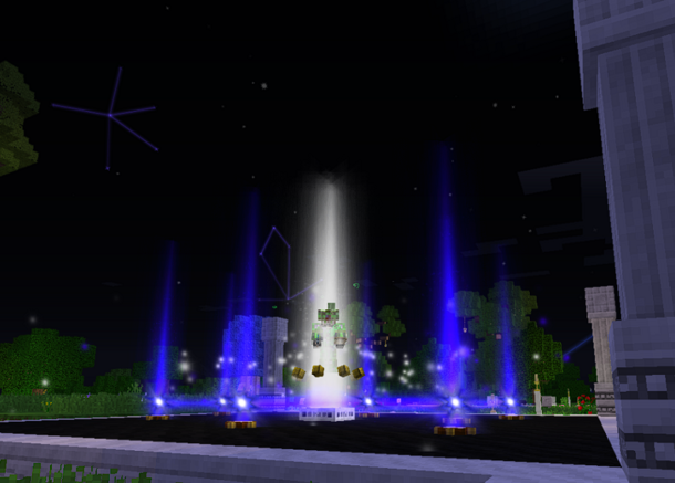Обратите внимание на количество необходимого для создания звёздного света и крафтите минимум две штуки. Потом надо собрать многоблочную структуру для этого устройства там, где будет "дверь1" и поставить первые небесные врата, затем отбежать/отлететь в нужное место, там собрать то же самое и поставить вторые небесные врата. Не забудьте про приват своих построек!После правильной сборки границы возле угольного мрамора начнут светиться и, когда вы будете входить на территорию устройства, небо будет темнеть куполом вокруг вас.
