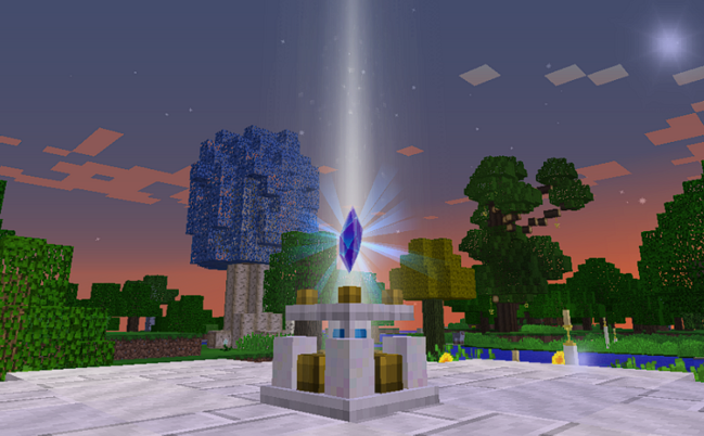 Если вы читали информацию, которая появляется в журнале после открытия на небе созвездий, то заметили там абзац про эффект ритуала. Это то самое. Работает как ванильный маяк. Крафтим пьедестал, собираем под него структуру и берём горный кристалл, настроенный на созвездие, чей эффект мы хотим испытать. ПКМ помещаем кристалл на пьедестал и начинается магия.