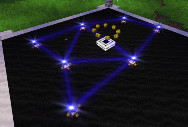 Вторая бомбёзная штука. Самая... ммм... вкусная^^ Этот алтарь позволяет настроить себя (или кристаллы, но мы ж о самом-самом пока, да?) на одно из пяти (настройка кристаллов не ограничена пятью) базовых созвездий. Как всё это происходит? Крафтим алтарь, строим под него структуру (имейте ввиду - места нужно будет немало - он 19 на 19 блоков; при правильной сборке над угольным мрамором появятся маленькие белые огоньки) и берём в руки свиток созвездия, на которое хотим настроиться (оно должно быть уже открыто у вас в журнале и быть на звёздном небе в ночь настройки), а также реле настройки (столько штук, сколько звёзд в выбранном созвездии). Со свитком в одной руке и реле в другой подходим к алтарю и видим синие огоньки. Ими отмечены блоки, на которые надо поставить реле.