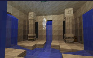 Кристалла тут нет, но прямо под одной из колонн есть сундук. Самые часто встречающиеся строения, бывают и в реках, слегка торчат из воды. Разберите и возьмите с собой мраморные блоки - пригодятся для крафта.