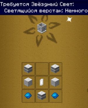 Разные виды верстаков/алтарей мода могут вместить в себя разное количество звёздного света. Наш верстак, поставленный под кристалл святилища, вмещает его совсем мало, поэтому настало время скрафтить новый. Да, мрамор для крафта пока что берём любой.