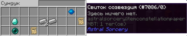 Орбита, о котором говорилось где-то в начале. Найдите этого торговца на спавне и поговорите с ним. Он попросит принести 32 пергамента (рецепт был в начале, где крафт журнала знаний), 1 ведро жидкого света и 2 звёздной пыли. С шансом 1 к 5 вы можете получить свиток созвездия.