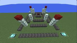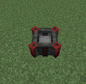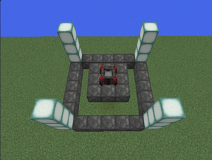 Далее, взяв в руки “Ритуальный предсказатель" вам необходимо нажать Шифт + ПКМ для выбора ритуала, вам потребуется ритуал “Край скрытого царства”. После чего вы должны поставить в удобное место “Мастер ритуального камня” и зажать кнопку ПКМ с выбранным ритуалом и 36 “Ритуальными камнями” в инвентаре. После завершения, конструкция будет выглядеть так: