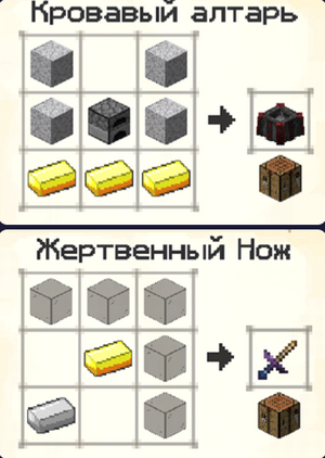 Чтобы начать изучение мода вам необходимо скрафтить 2 вещи, это “Кровавый алтарь” и “Жертвенный Нож”.