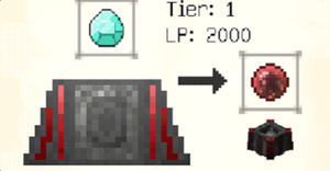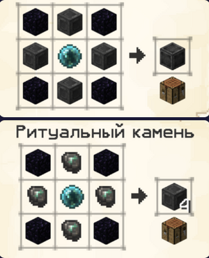 После создания “Слабого Активационного Кристалла” вам необходимо нажать ПКМ по “Мастеру Ритуального Камню”, у вас выйдет такая конструкция: