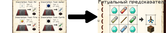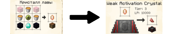 Для него нам понадобится создать Ритуальный предсказатель [Dusk] а также скрафтить 48 Ритуальных камней и 1 Мастер ритуального камня, а для активации необходим Слабый Активационный Кристалл.