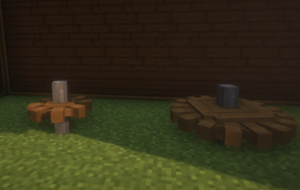 Для того чтобы получить нашу первую кинетическую энергию нам надо сделать "Водное колесо". После создания колеса нужно подать поток воды. Во и наша первая кинетическая энергия!