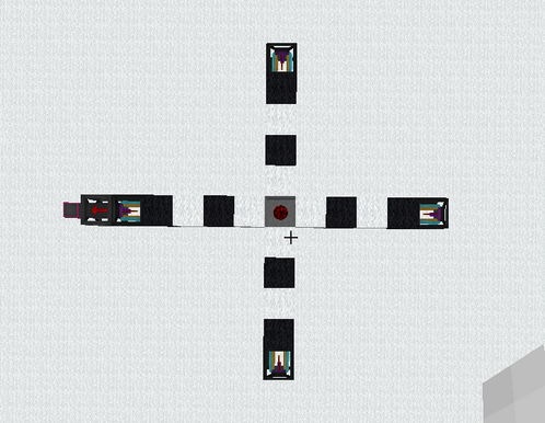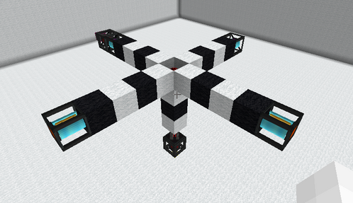 В центре находится ядро, по 4 сторонам стабилизаторы реактора и снизу инжектор реактора.