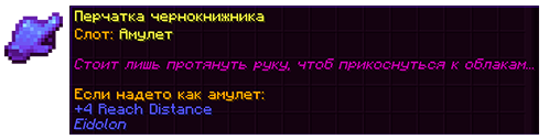 Перчатка чернокнижника - увеличивает дистанцию взаимодействия примерно в два раза.