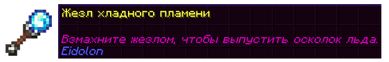 Жезл хладного пламени - стреляет блестящими зарядами энергии, которые прекращают регенерацию существа, как от эффекта зелия "Обмороженный", нанося сильный урон.