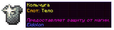 Кольчуга - обеспечивает отличную защиту от магии. Например зелья, заклинания из модов и т.п