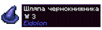 Шляпа чернокнижника - усиливает магические атаки или иссушения своего владельца на 50%, а нанесенный иссушающий урон немного будет лечить вас.