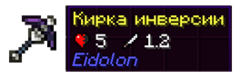 Кирка инвенрсии - эта кирка работает не как обычно, чем тверже разрушаемый блок, тем быстрее кирка его сломает. Например: обсидиан сломает быстро, а камень будет ломать долго.