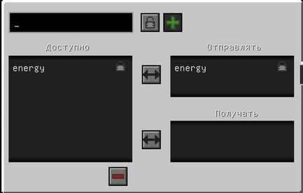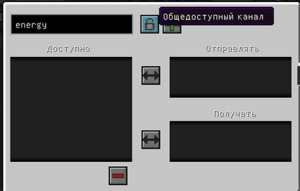 Вписываем название канала (любое) но нужно запомнить. Допустим назовем канал "energy" далее закрываем (блокируем) его нажав на "замочек" (для того что бы кроме вас никто не смог воспользоваться вашей энергией или не стащить предметы) и затем создаем его нажатием на "зеленый +" и помещаем в блок "отправлять". Тем самым из первого передатчика энергия будет отправляться.