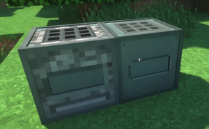 • Установите сундук, в который вы будете загружать сырьё (например, обычный булыжник).