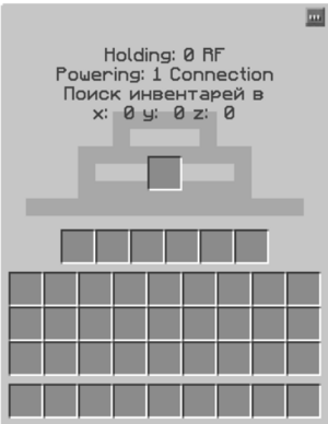 Работает аналогично узлам передачи (Энергия) и (Гиперэнергия), извлекает энергию из инвентаря к которому присоединена.