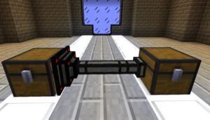 Данная труба позволяет осуществить передачу стака определённого предмета в инвентарь, к которому она присоединена.
