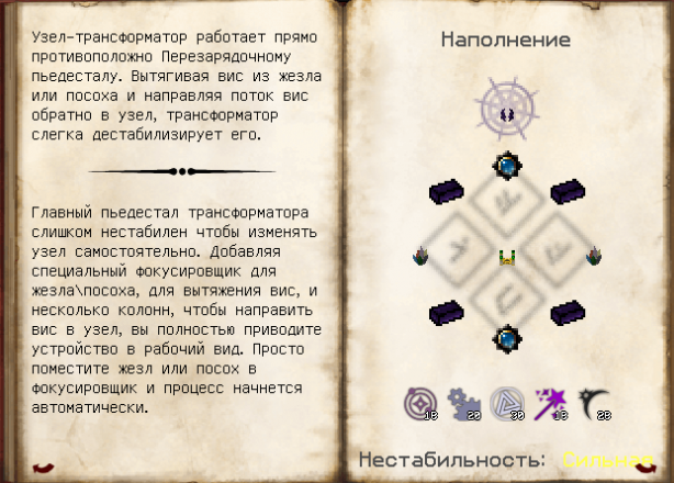 Для конструкции нам понадобится: 4 Камня древних, 4 пьедестала древних, узел-трансформатор, Фокусировщик случайных всплесков и любой узел ауры