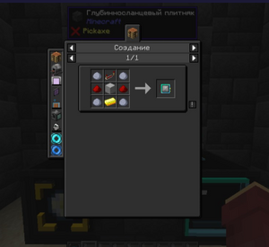 Для того, чтобы начать изучать данный мод, понадобится скрафтить Прибор детального изучения. Для его создания нам потребуется: 4 обсидиана, 3 повторителя, 1 редстоун и 1 стеклянная панель любого цвета.