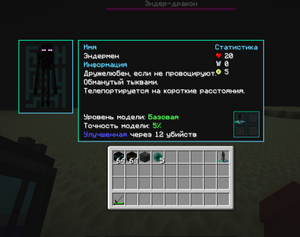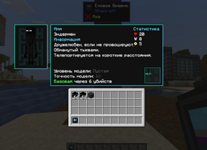 Как только мы скрафтили Основу модели, нам нужно взять её в руку и нажать ПКМ по мобу, ресурсы с которого мы будем фармить в будущем. К примеру: Эндермен.