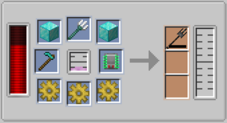 К ней нужно направить лазерные дрели. Дрели можно ставить где и как угодно вокруг этой основы, главное, чтобы основа была в их радиусе действия. Дрели конечно запитать. Этот механизм копает любую руду в любом месте. В нём можно настроить глубину (то есть если вам нужны алмазы выбирайте 7-12). Для увеличения шанса определённых руд можно использовать линзы нужного цвета. Лимит оснований 8.