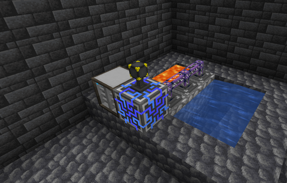 После этого тигели начнут вырабатывать лаву из булыжников. 1 булыжник = 1000 mB лавы.