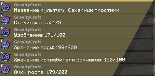 У сахарного тростника три стадии роста, на третей стадии роста он может скреститься с другим сахарным тростником и в двойных жердочках появится новый росток растения. Проверить стадии роста растения можно анализатором агрокультур держа его в руках и нажав ПКМ по ростку.