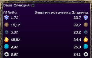 Источники элдрина разбросаны по всему миру и скрыты от глаз простых игроков. Они как и элементальные частицы бывают шести видов: Земля, Огонь, Аркана, Воздух, Вода, Эндер.