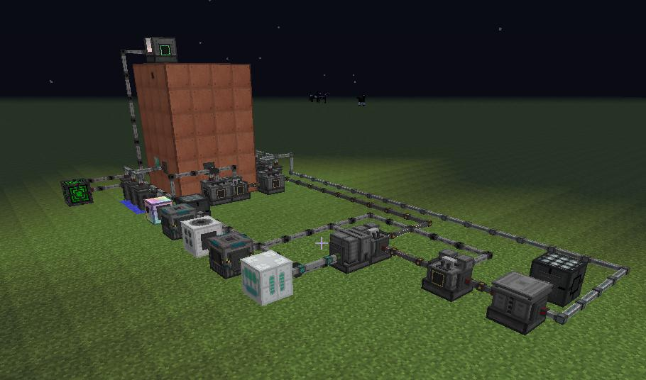 Для нагрева испарителя я буду использовать устойчивый нагреватель, а для поставки воды и извлечения рапы трубы из Ender io. Когда мы поставим нагреватель и немного труб получится это: