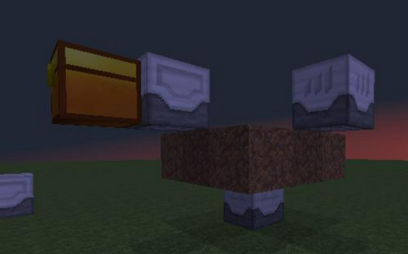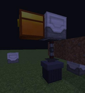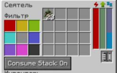 Он выталкивает собранные предметы сзади. Так же визуально у него имеется характерное отверстие. Ставим туда сундук, трубы или то, что способно принимать предметы.