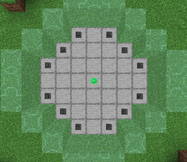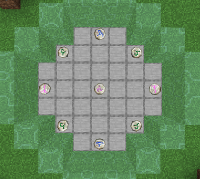 Так же в пределах ритуала должен находится Странствующий торговец, поэтому лучше построить ограждение как показано выше, а также у вас должно быть немного маны, чтобы активировать ритуал. Когда все сделано нужно кликнуть ПКМ по Мастеру-хранителю рун и ритуал активируется.