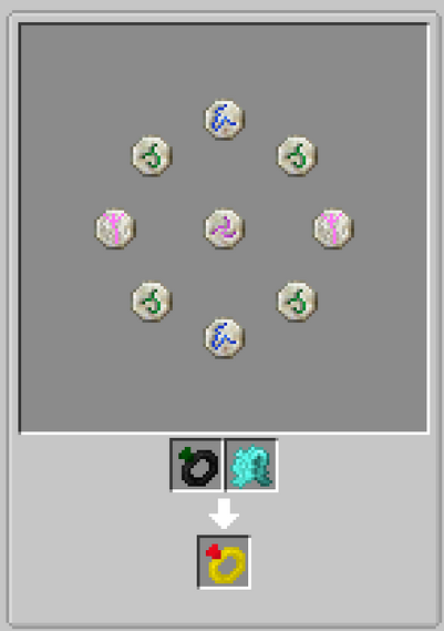 После расставляет руны как в крафте в jei и на картинке ниже. В центр ритуала кидаем: