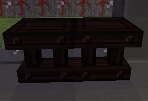 Далее ставим 2 стола рядом и ставим на него чернильницу (советую ставить на левый стол и выйдет эстетичнее).